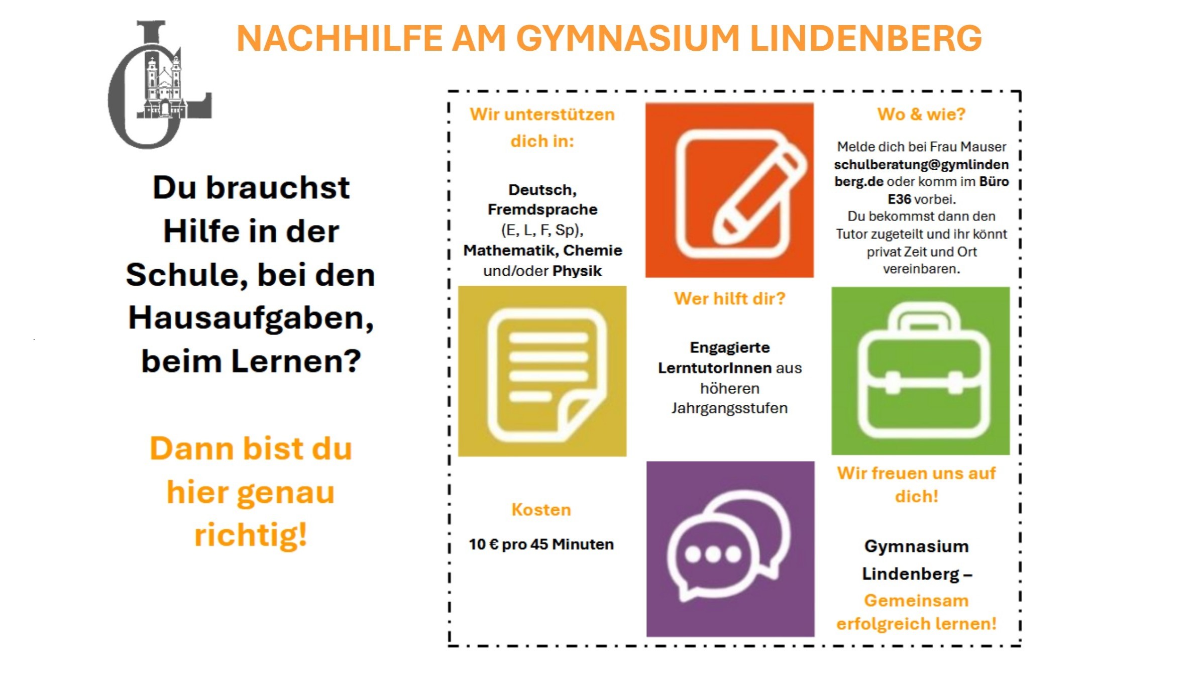 Treffen werden Lernstrategien, Hilfe bei Hausaufgaben und fachliche Orientierung vermittelt. Hier erfahrst du mehr.