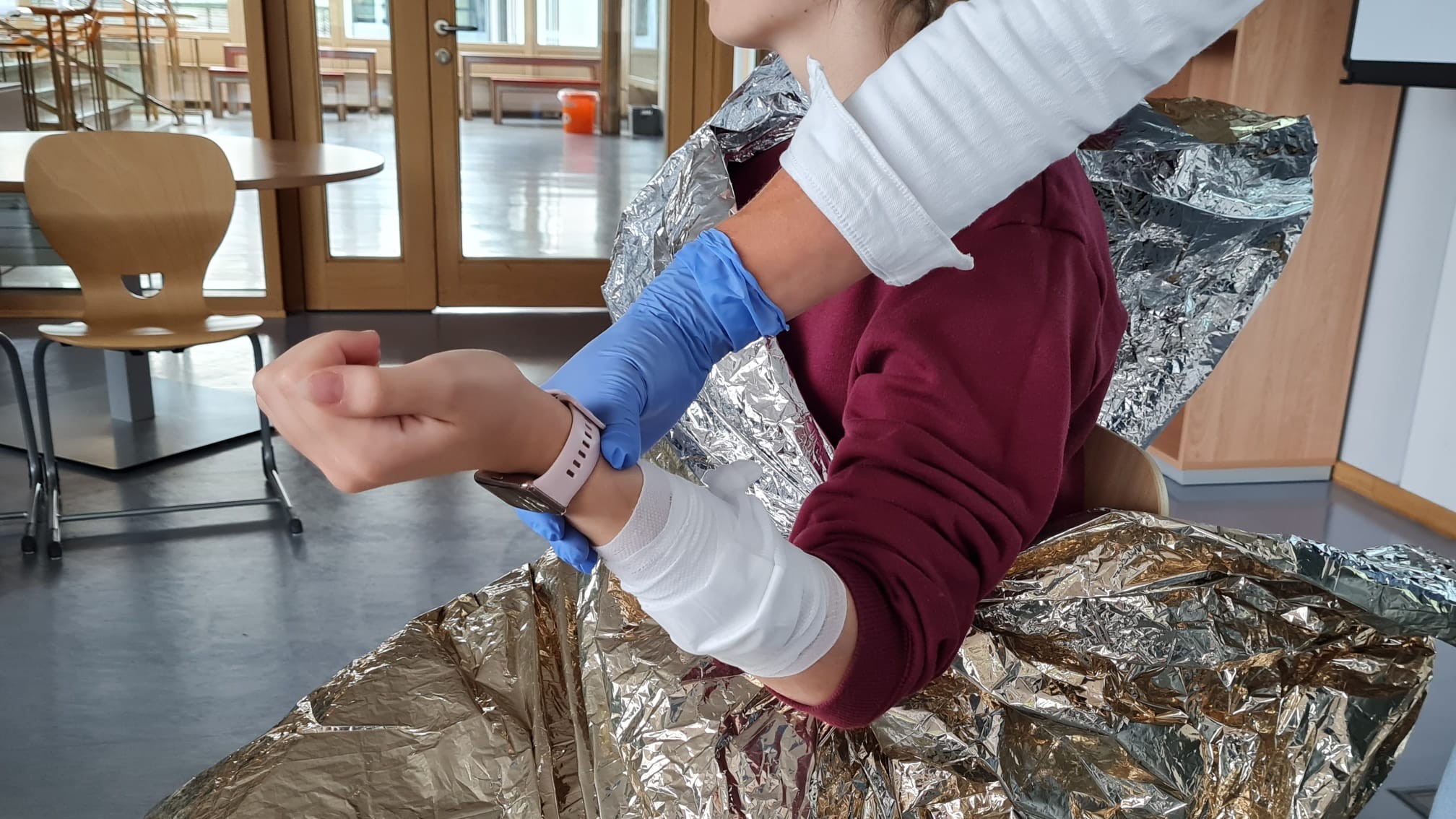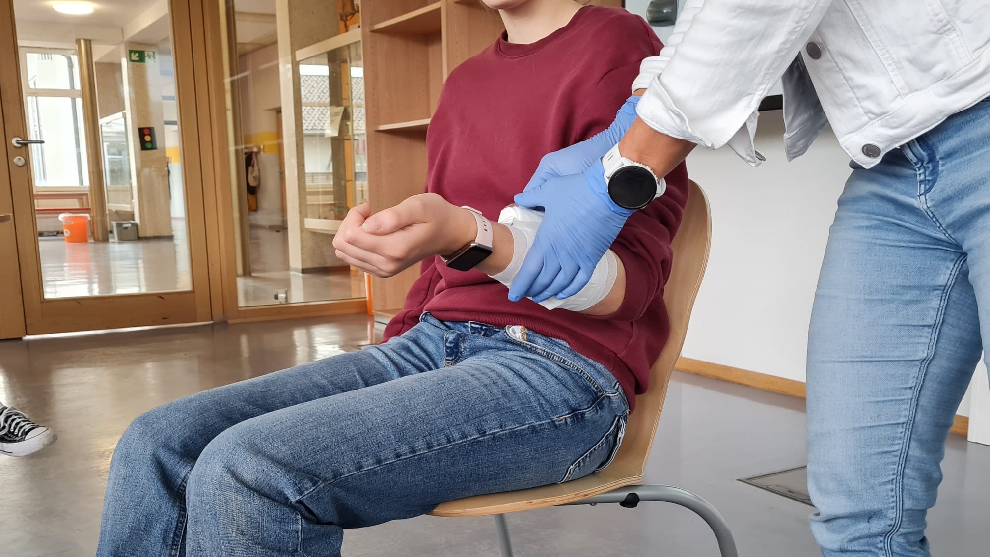 Schülerinnen unseres Gymnasiums setzten sich mit den Facetten des Pflegeberufs in Spielszenen auseinander, während